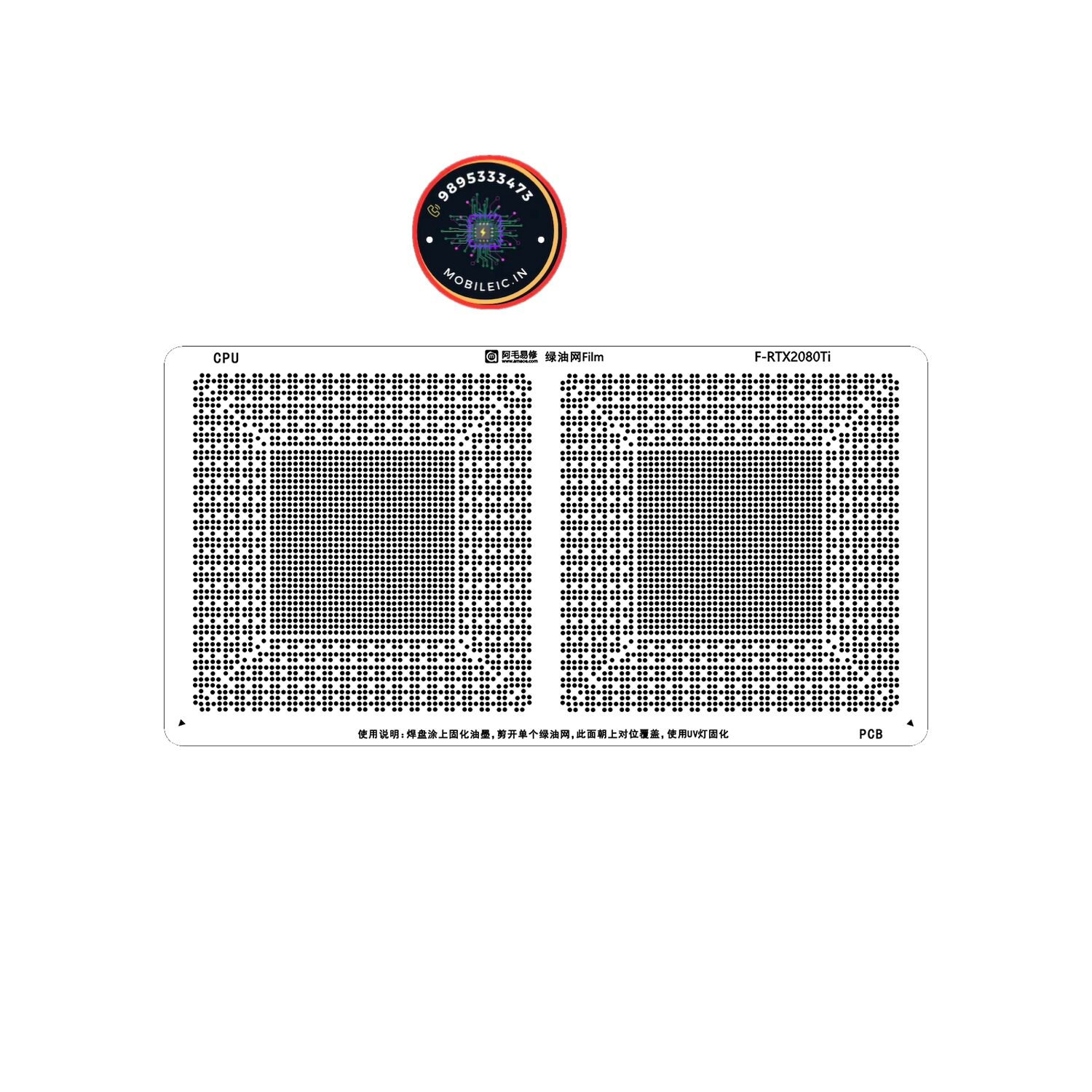 • RTX2080Ti: This is the specific graphics card model the stencil is designed for. The core chip is typically the NVIDIA TU102-300-A1 (or a variant like TU102-400-A1). This is a very large, high-density chip with thousands of solder pads.